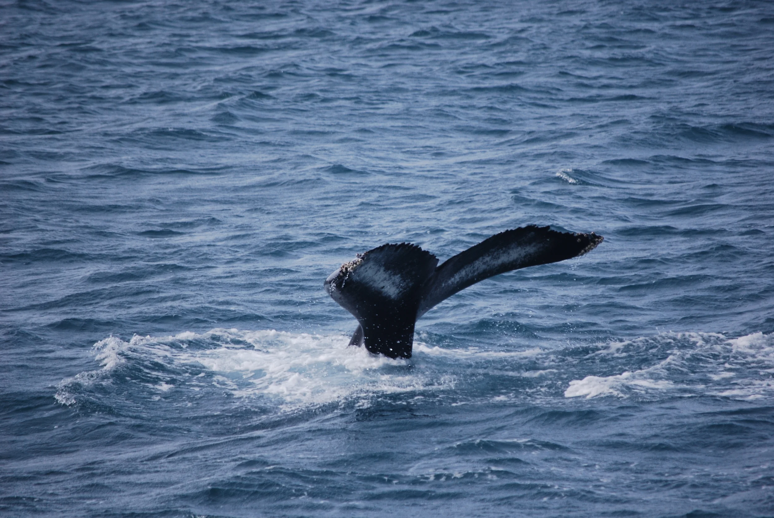 It certainly did not feel like summer this morning. Like last few days the wind kept blowing from north, filling the fjord with clouds and picking up some swell on the water. Luckily we always stay within the fjord so the sea conditions are always fairly good so no one felt sea sick. Despite the weather our sightings were great! We got to see some of our regulars like the large humpback we call Guillemot and Tequila Blanca.