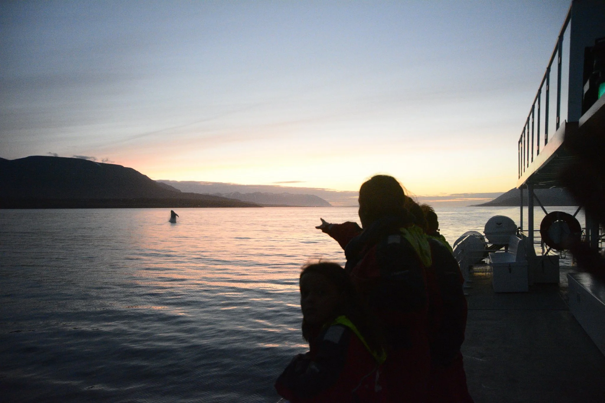 It was a beautifully sunny day with little wind in Eyjafjordur, which made for wonderful sighting conditions. I did not think that there could be more whales in the fjord than yesterday, but how wrong I was - we estimated at least 20 whales today! So happy to see many of our favourites in the fjord like Nonni and Guillemot hanging out with some newer individuals too such as Cousteau. During the afternoon we saw some impressive lob-tailing by 2 individual humpbacks as well as having 3 whales interacting with each other only 50 m in front of the boat, a spectacular sight! On the evening tour we were blessed with the most beautiful sunset and, to top it all off, 4 breaches by 2 individuals on our way home! What a fantastic hump day.