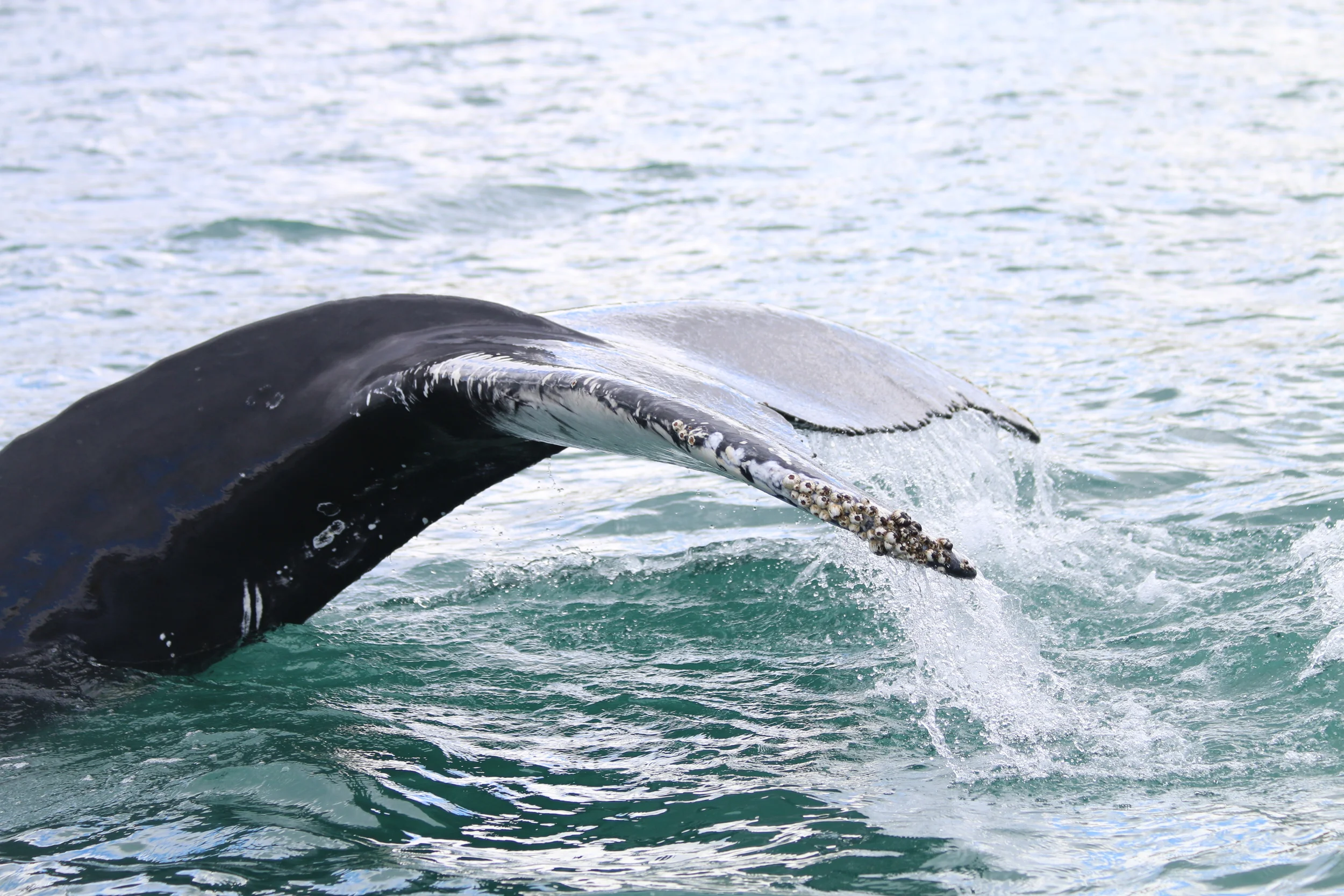 Eyjafjördur woke up to our whale watching call. It was partially cloudy and warm for most of the day. All set up and ready to rock we threw ourselves into the fjord on board of Hafsulan (one of our biggest and fastest boats in the fleet). It did not take long to come across the first whale on the morning tour. We saw at least 6 different humpback whales throughout the day! Some new ones amongst them and some we already know of: Tequila Blanca and Guillemot. They were most likely feeding in the deep of the fjord. The deep dives and our Fishfinder on board do not lie (the fishfinder is a high frequency sonar which only shows the fish underneath the boat). It was great to watch such an amazing behaviour! Lovely tours!