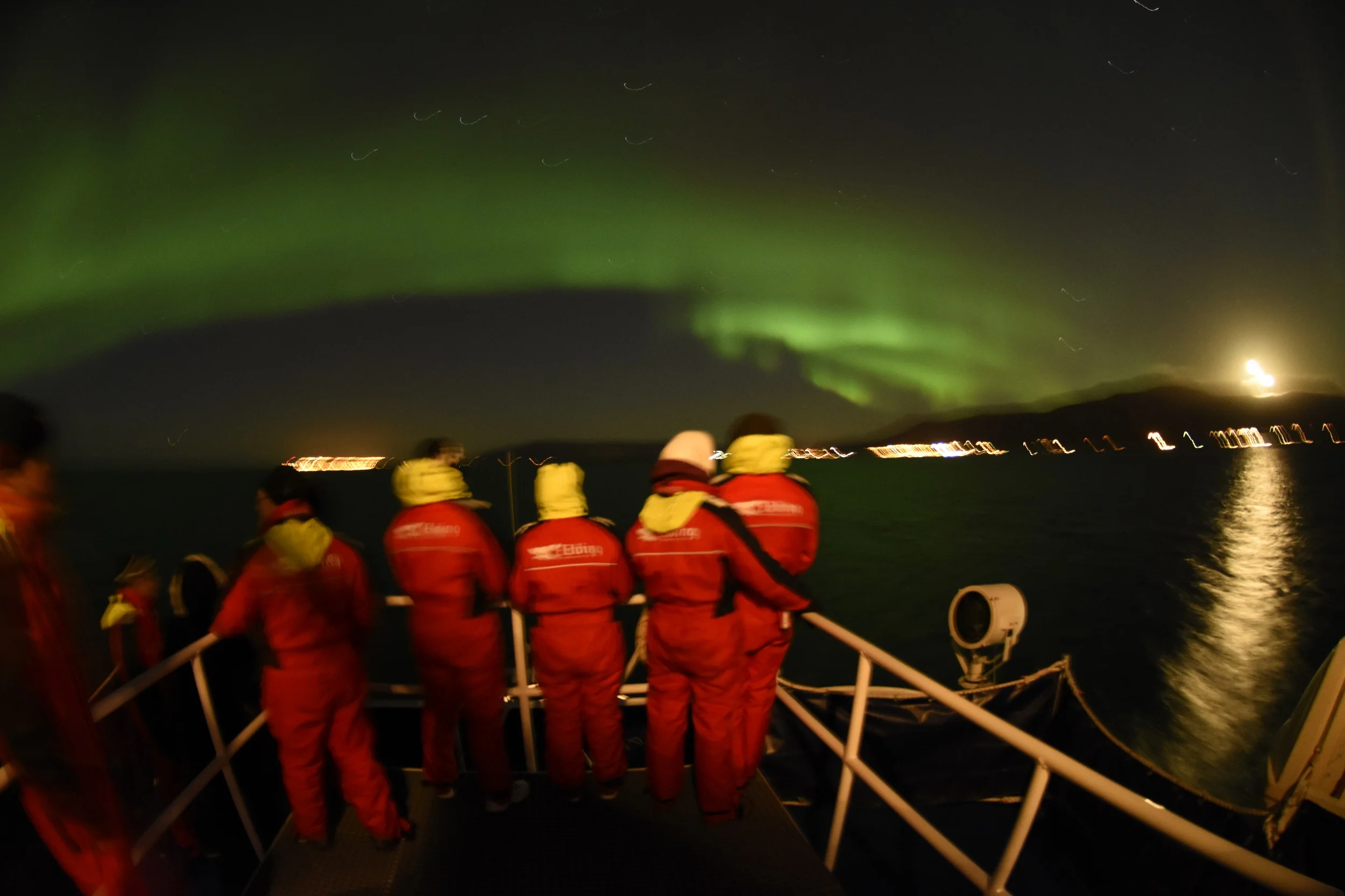 The 1,5-2,5 hr. cruise is an enjoyable journey into Eyjafjörður, that transforms into a mysterious place at night. This is a great way to experience the Northern Lights, away from the city lights, while you enjoy a comfortable ride on board our ship. Whether you choose to stay inside free of the cold weather, or wrap up in one of our warm overalls and stay outside on the look-out for the lights up above, you are guaranteed an enjoyable cruise.