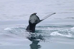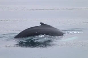 Today was a foggy day in Eyjafjordur, all the mountains were covered in clouds but luckily we were still able to see some of the nice green hills. The whales were quite far out, we had to travel all the way to Hrisey. Around the island there were several pairs of whales and a number of individuals. The humpback whale named after our captain Arnar came very close and moved under our boat. Especially during the later tours we saw a lot of humpback whales at the same time. Because the water was so smooth and the surrounding so quiet most of the time we heard the whales before we saw them. It seemed that the smooth water also had a quieting effect on our whales and we encountered a number of them napping just below the surface.