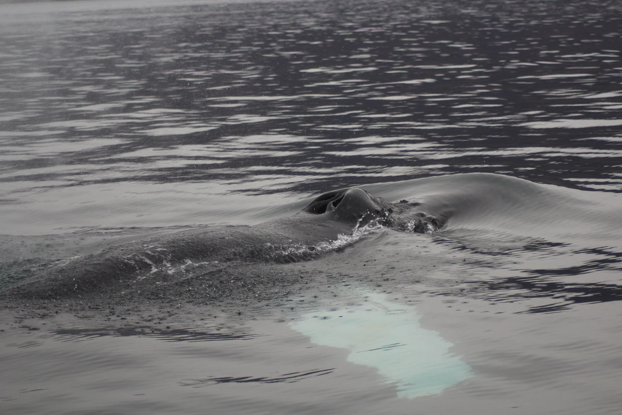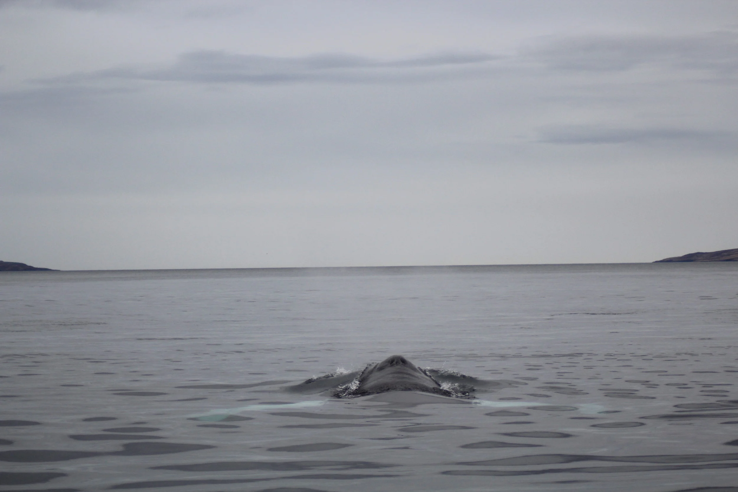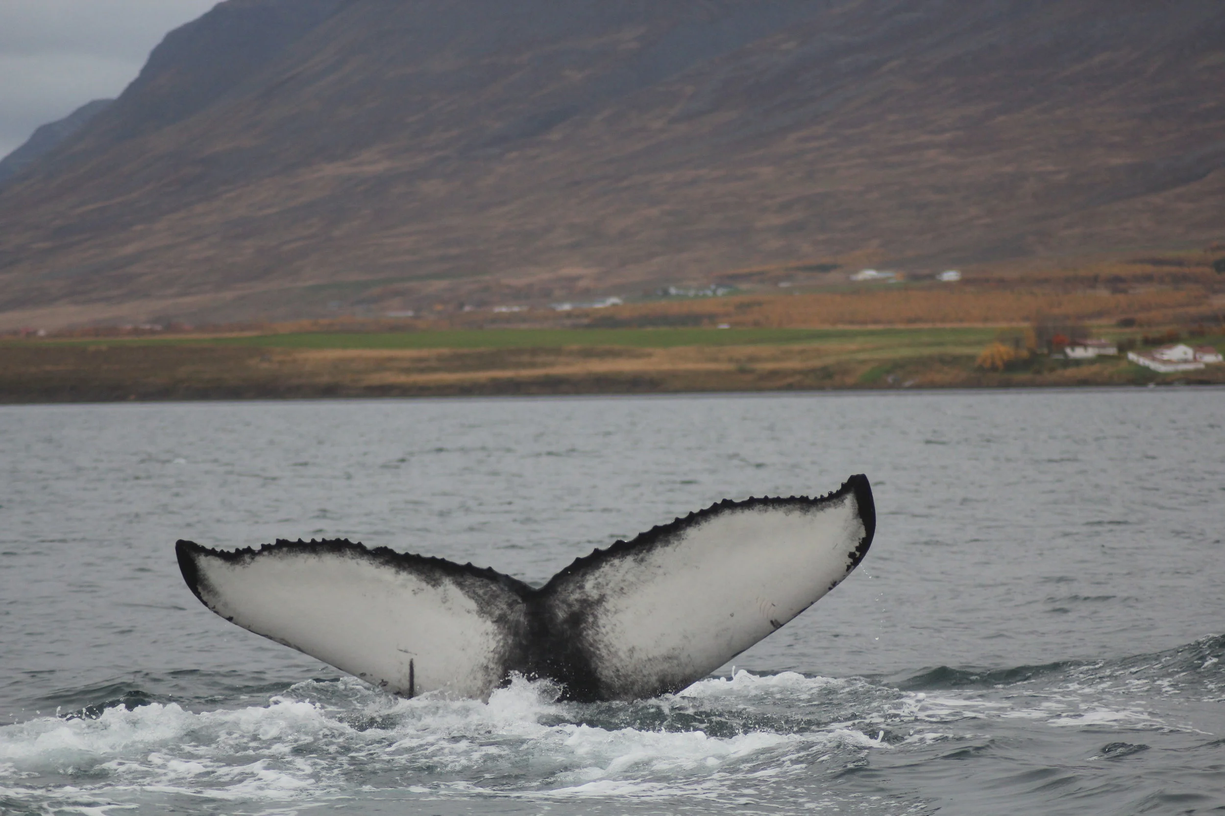 Today we had a bit of a rainy day in Akureyri. It was not really raining much, but rather a constant drizzle that accompanied us on our tour. Nevertheless we had a great day out at sea. We had 8 different humpback whales in close proximity so that we could divide our time and attention equally between all individuals. That is when we realized that next to 7 whales we had seen for quite a while here now one new humpback had joined the area. As it turned out it was not a new individual, it was actually 'Awesome Fluker' whom we had seen many times at the beginning of the season. How nice to see this whale returning into the fjord. We are excited to see who will return next, maybe passing through on the way to warmer waters for the winter.