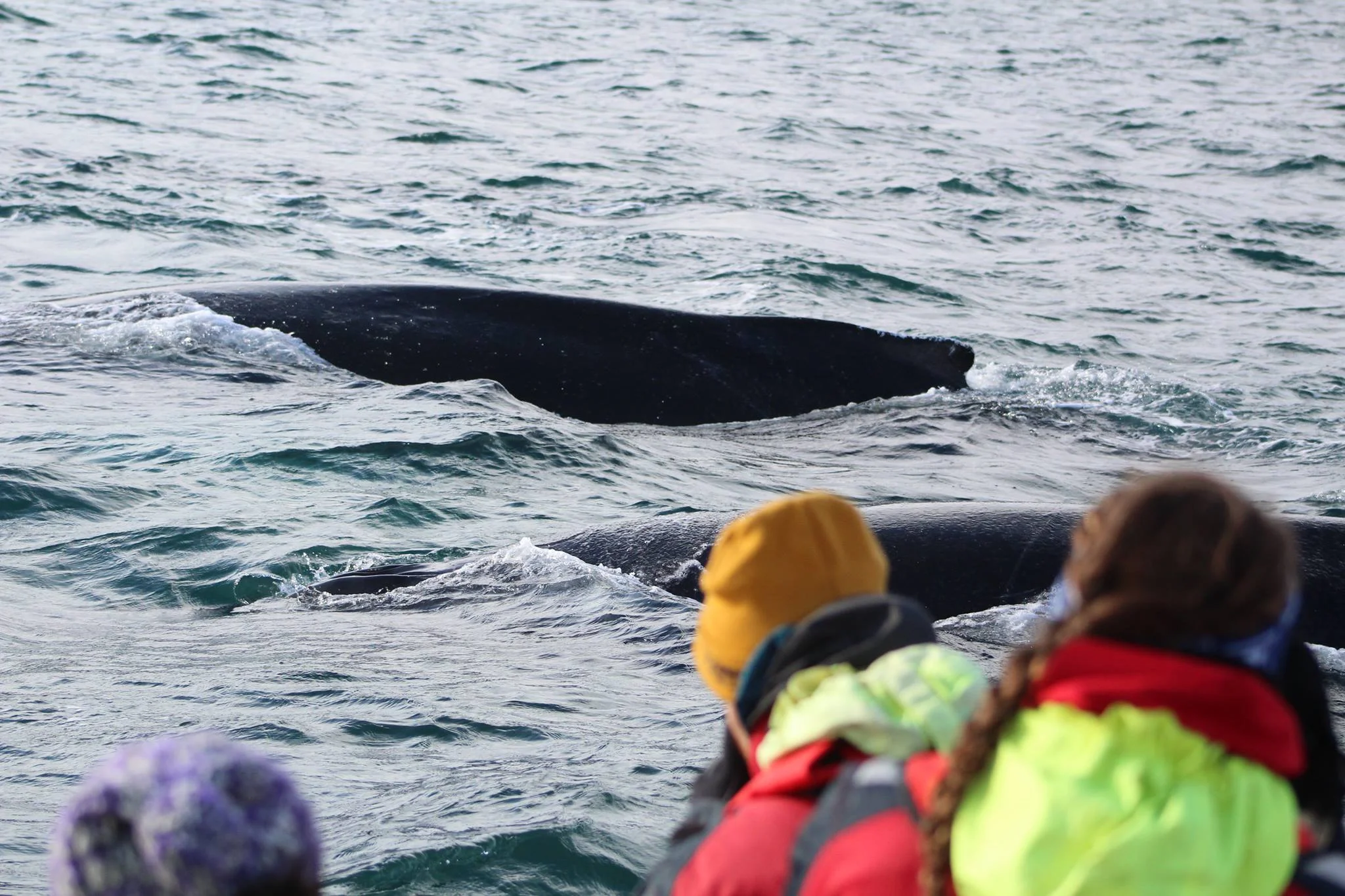 The day started off rather windy and rainy however, this did not affect the whales at all! We didn't have to wait long at all before we caught our first glimpse of these wonderful animals in the distance. Their large beautiful blows shooting up from the waters surface. We spotted a group of four and another two over a kilometre away. Once closer we watched these wonderful animals surface numerous times and were able to identify the four animals travelling together as our four musketeers "Athos", "Porthos", "Aramis" & "D'Artagnan". While the two travelling together were the "dark knight" and a new individual. On the afternoon tour, held on our fast speed boats, the wind had died down and even the sun came out to play. We spotted the same four travelling together while occasionally dark knight or the new individual would join them making a group of 5 whales! These animals shocked us a few times by surfacing many times really close to the boat! Once close enough you could almost touch it! So amazing when our engines were off and we were just floating with the currents.