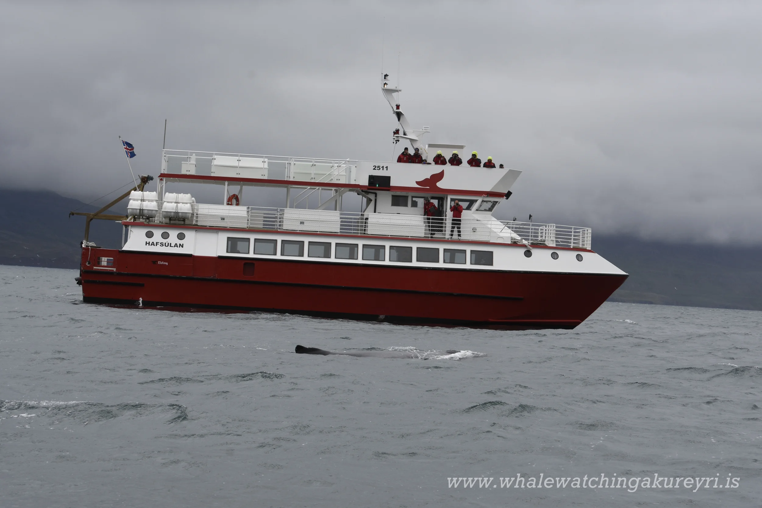 The Eyjafjord humpback whales were a little sleepy this morning and went for long drives. We got a big surprise on our 1600 RIB tour when one of our regular humpback whale ' Mariposa' started breaching and pec slapping. Earlier in the day we had another regular 'Black Arrow' spy hopped (popped him head up from the surface. They were full of surprises today, first a little elusive and then suddenly very playful. These incredible animals are never boring. A minke whale and harbour porpoises also made an appearance today too.