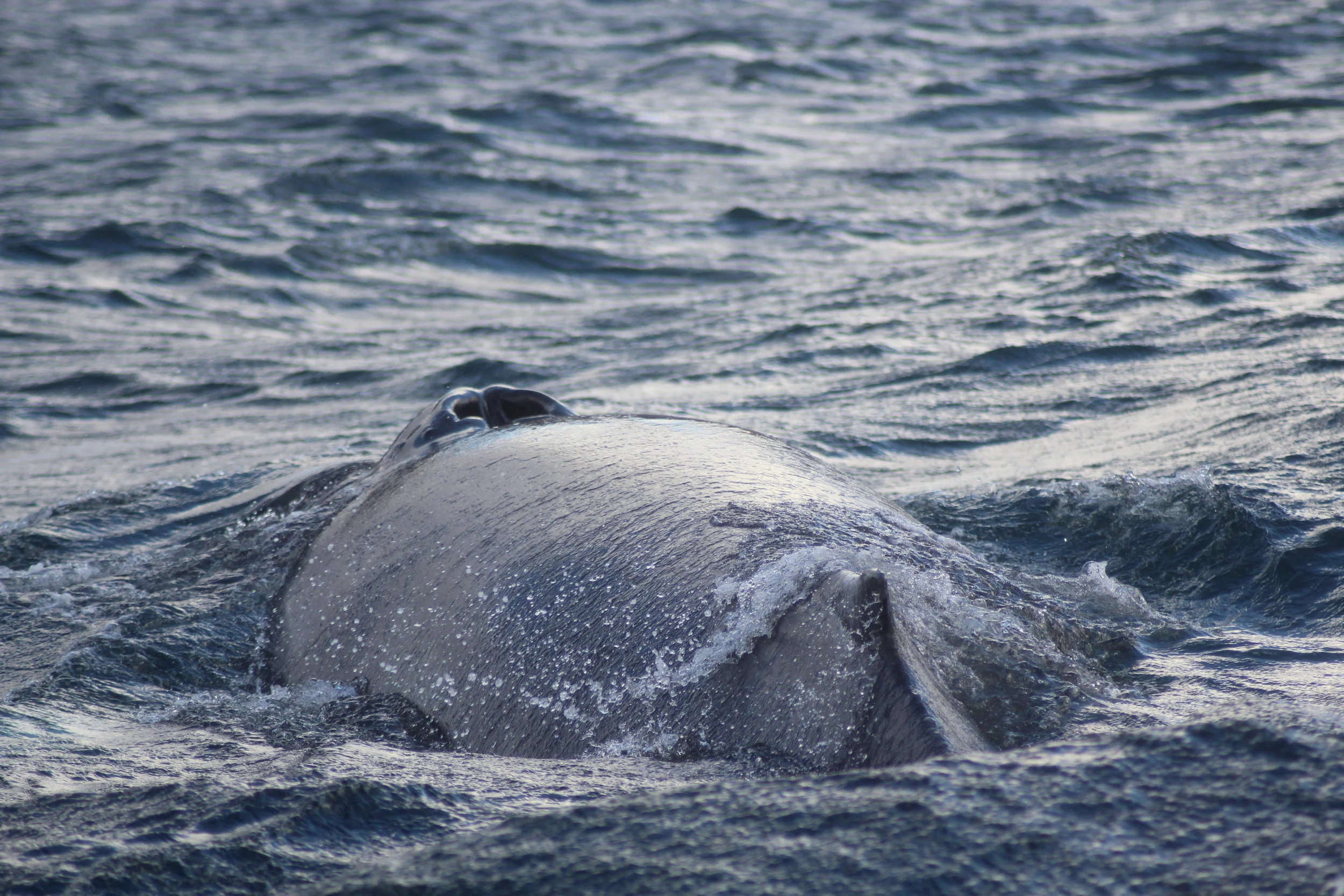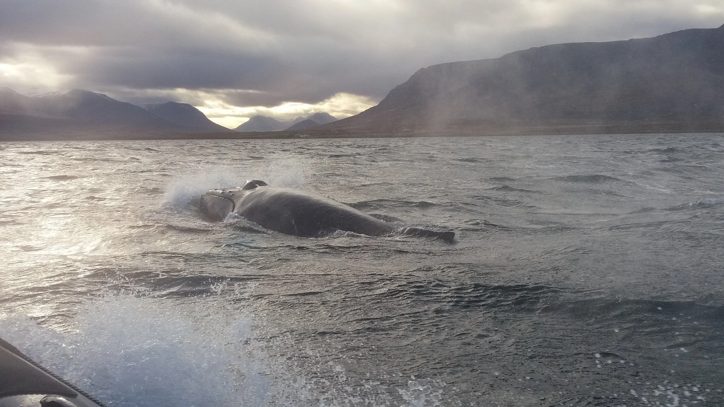 The weather continued being a constant mixture of sun, clouds and some wind today so that we went out twice, one tour in the morning and one tour in the afternoon. Due to the wind we had some movement on the boat and got splashed from time to time, but that did not stop us from enjoying our great humpbacks. Overall we had the pleasure to spend the day with 6 different well known humpbacks. Next to Needle, Mariner, Reykja and Frankenstein we were also surrounded by King Louis and Dark Knight. The two of them seemed to be keeping each other company once more like we have observed many times over the last couple of weeks. It really makes one wonder what these humpback whales are exactly doing when they are socializing. Our passengers today were excellent spotters and had fun identifying the different individuals. Another great day here for Whale Watching Akureyri.