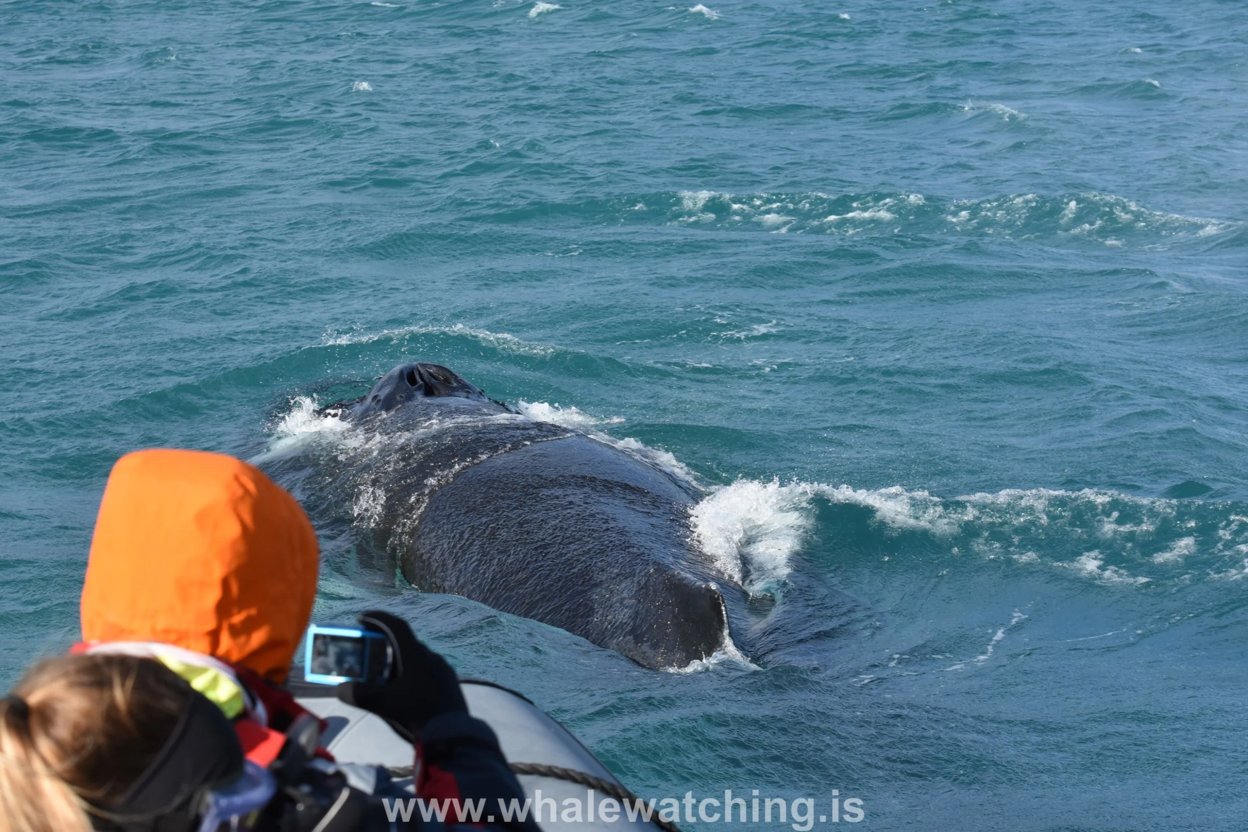 It was a beautiful sunny day as we headed out into the fjord. It was a little bit windy but that just made the ride out a bit more fun and bumpy. Today we didn´t have to wait too long to see these magnificent creatures and we were very blessed as there were an incredible amount of humpback whales in the fjord today. On our fist tour we spotted at least 12 different whales!! We watched in awe as these fantastic creatures surfaced numerous times and came so close to us before arching and going for a deeper dive. On our second tour of the day we observed 9 different humpbacks coming up in all different directions. We were also lucky enough to see a huge tail lob and a breaching whale! It was very far away but still magnificent, what a fantastic day in Eyjafjord.
