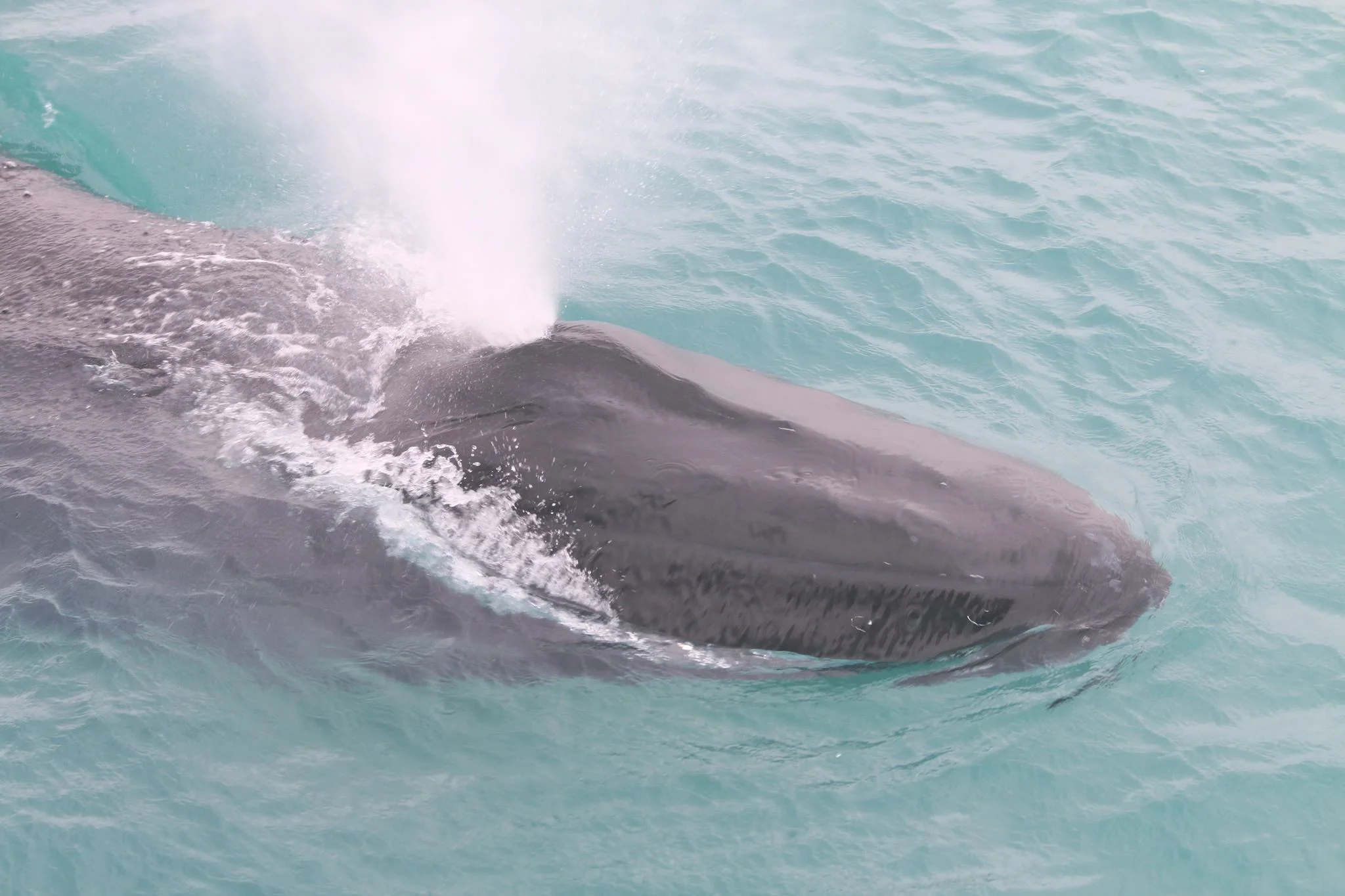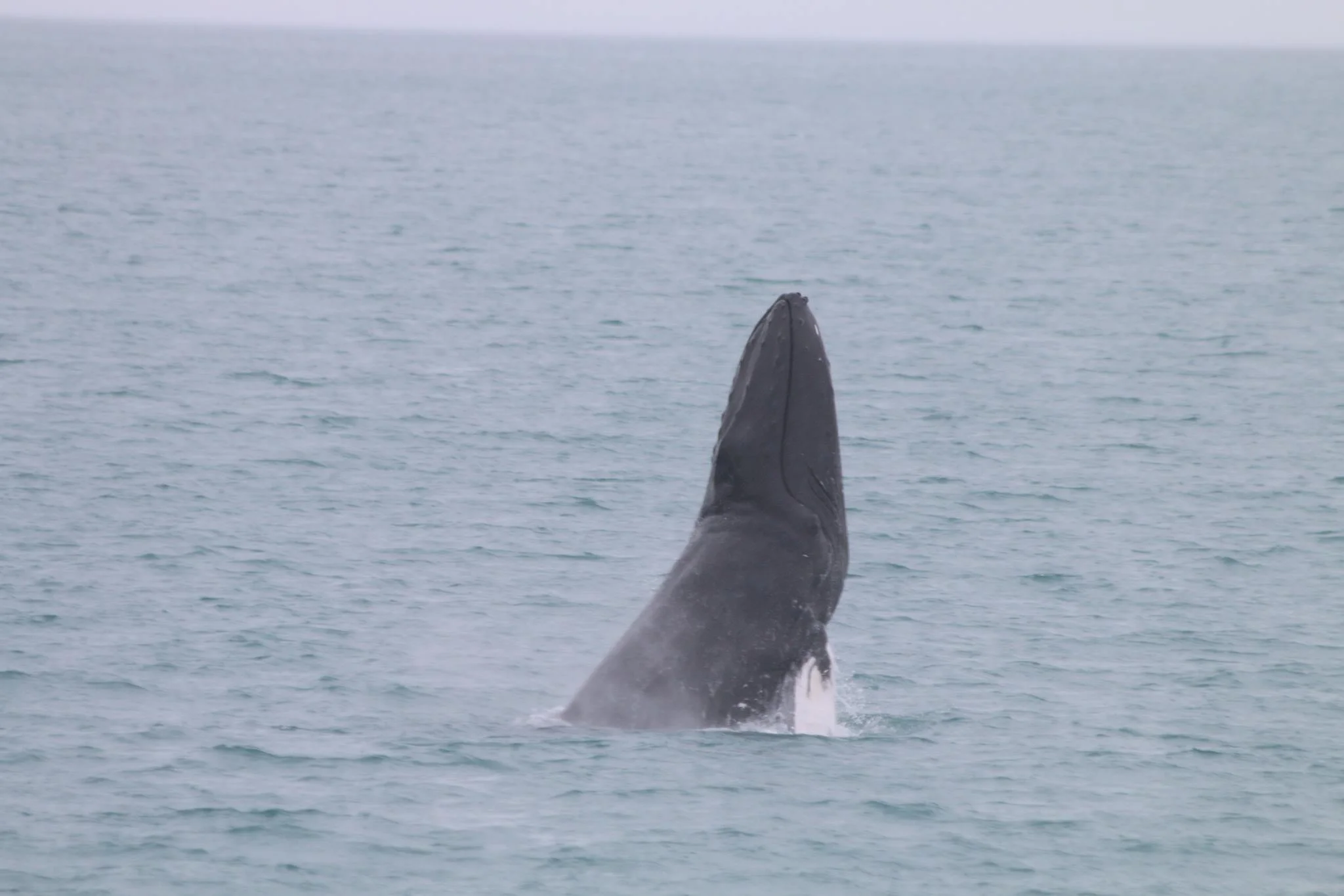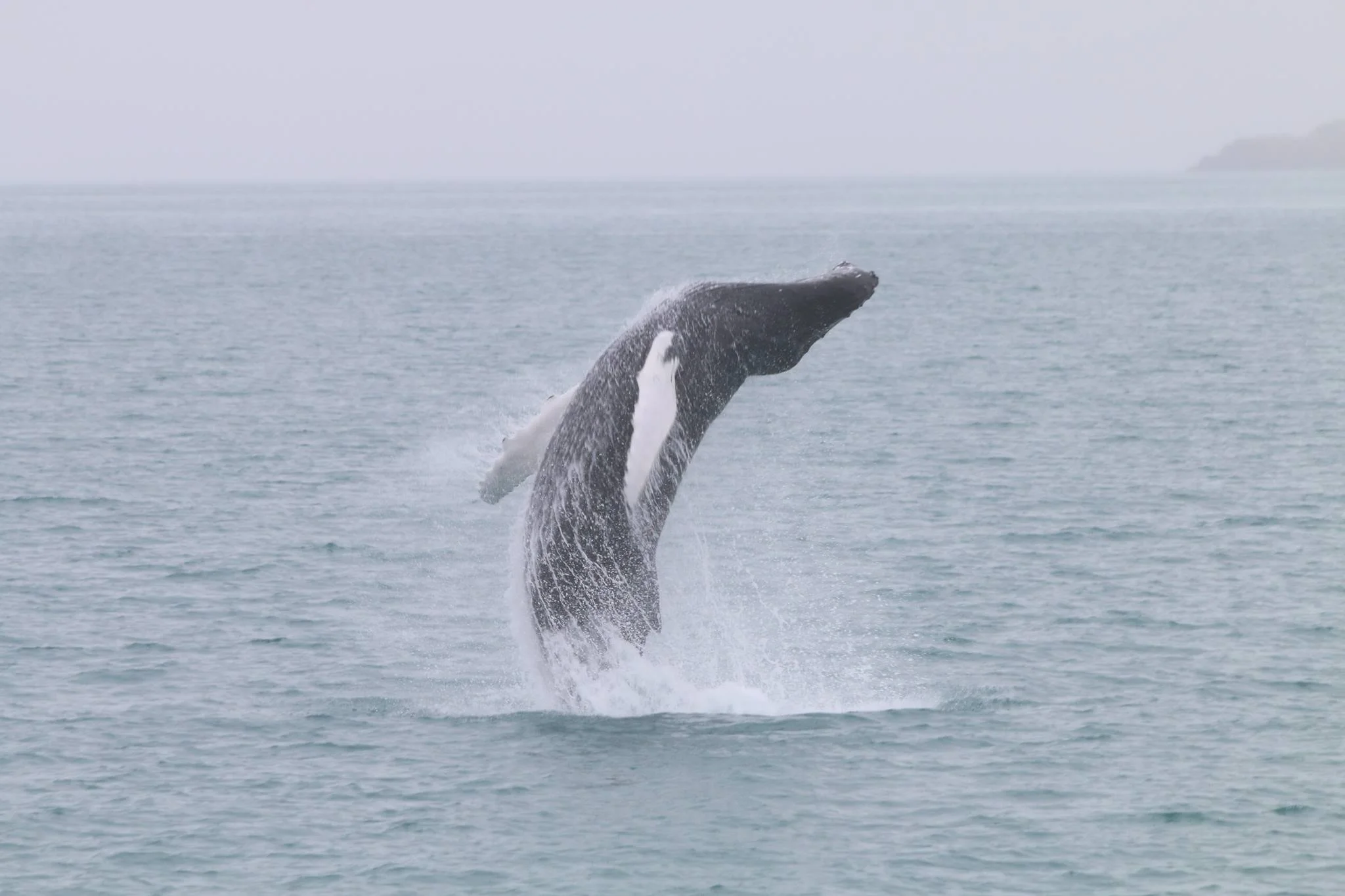Akureyri woke up overcast in the morning and Pollurinn (the interior of the harbour) looked like a mirror, completely flat, so it was the same along the whole fjord during the morning. The Humpback whales were very relax during the morning; we could see a pair which were swimming side by side during the whole tour, coming up at the surface to breath and going down for a dive at the same time; one of them was much larger than the other, so it could be the possibility of being mother and calf. The afternoon brought the rain but that didn’t stop us to go again and take a look at the Humpback again, and for sure it was worth it. A Humpback whale was breaching for about 45 minutes with consistent breaths, head slapping and flipper slapping. At the same time, another Humpback whale breached few times too in the other side of the fjord; it was amazing afternoon in Eyjafjörður.