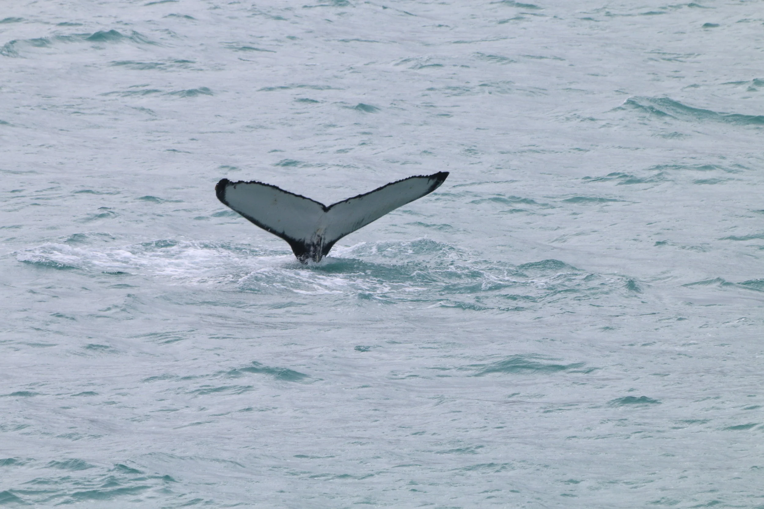 It was a slightly chilly day as we sailed out into the fjord but this only gave us the opportunity to use the wonderfully warm overalls we have onboard. After sailing for only 25 minutes a humpback was spotted in the near distance. It surfaced a few times before going for a longer dive. As this animal was surfacing fairly irregularly it was decided to move out a bit further to see some other whales. After a bit more sailing a few harbour porpoises were spotted and then later another humpback which we like to call the dark knight. This humpback surfaced many times so everyone was able to get a lovely look at it. As we sailed back the sun broke through the cloud and were able to enjoy the beautiful Icelandic sun on the way home.