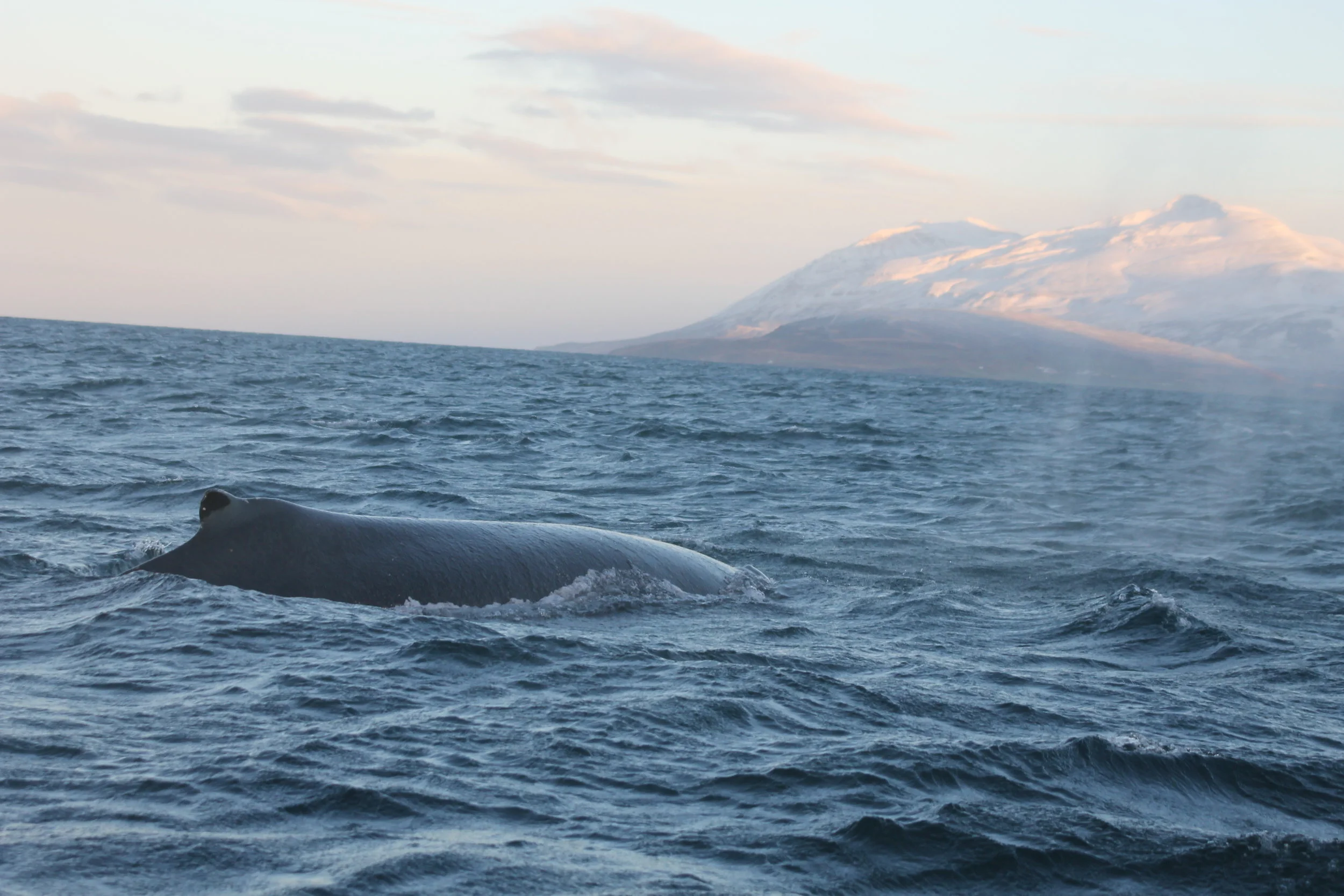 Today was beautiful and sunny the mountains were covered with a fresh layer of snow, giving us a spectacular view of the landscape. The sail out was fairly short as the whales began to be spotted only 15 minutes from harbour. In the first 20 minutes we were able to view 2 different humpback whales, one of which came within only a few meters of the boat! A further two whales were also spotted in the distance so it was decided to go and take a closer look at these individuals. Some of our regulars were out to play in the swell including "The Dark Knight", "Daggers" and "King Louis". As the wind picked up we decided to head back but we were all very happy as we got to witness some beautiful humpback whale behaviour including many flukes up only meters from the boat.